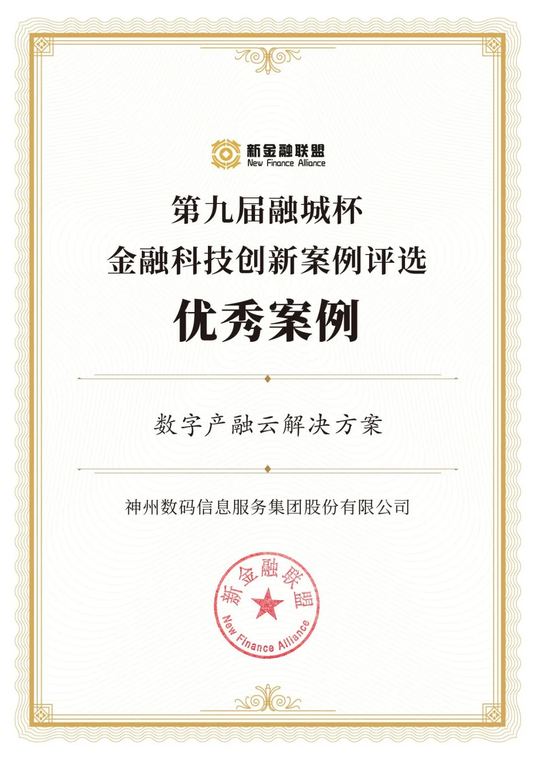 9月6日的第六届外滩金融峰会上,第九届“融城杯”金融科技创新案例评选颁奖典礼隆重举行,神州信息申报的“数字产融云解决方案”荣获第九届“融城杯”金融科技创新案例评选“优秀案例奖”,这是组委会对神州信息持续创新、勇攀高峰,数字金融探索中的贡献的认可。