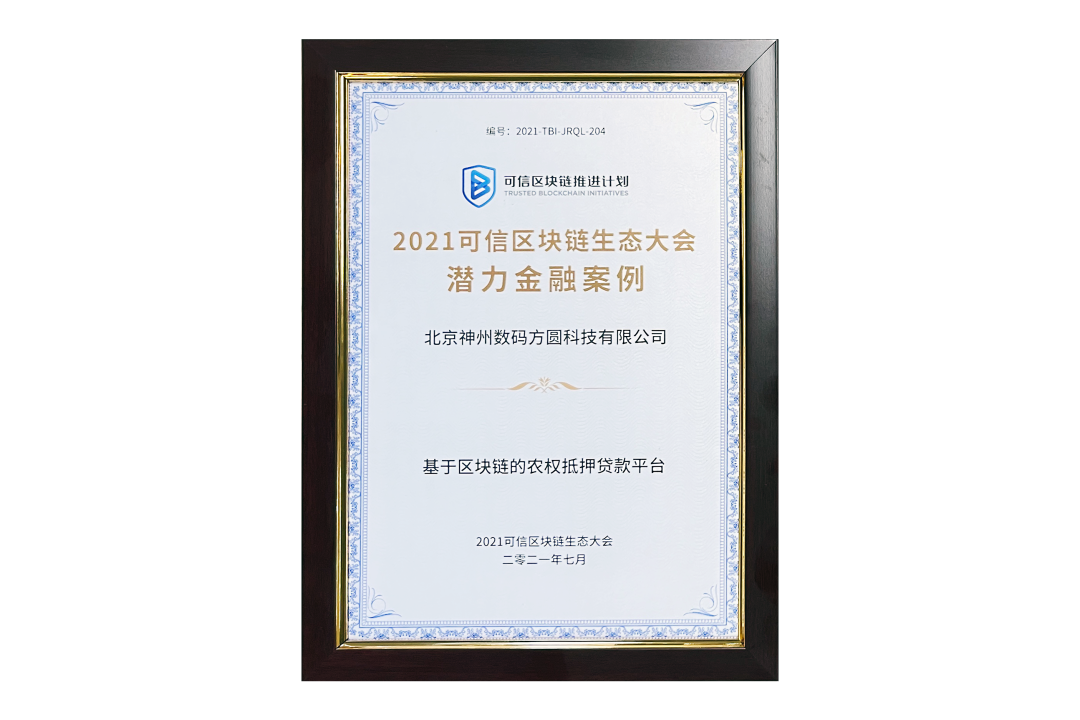 7月13日,由中国信息通信研究院、可信区块链推进计划主办的“2021可信区块链生态大会”在京举办,并隆重发布系列成果。神州信息子公司北京365钱包方圆科技有限公司(简称:神州方圆)推荐的“基于区块链的农权抵押贷款平台”荣获十大金融应用高潜力案例,为“区块链+农业”落地带来示范效应。
